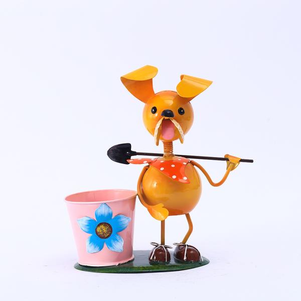 The attached iron bucket can accommodate your favorite plants, which is very suitable for placing on the windowsill and lawn. The image of the puppy is very vivid.